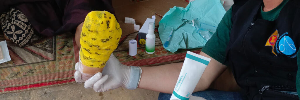 At the community level, residents affected by the floods are receiving wound care and basic medical support at temporary health posts and shelters. With prolonged exposure to floodwater, displacement, and limited access to healthcare, the risk of infection and other complications has risen sharply, making timely and appropriate care essential for affected families. Medical supplies, including dressings and protective care items, are being used to support basic treatment needs and help manage wounds in these challenging conditions.