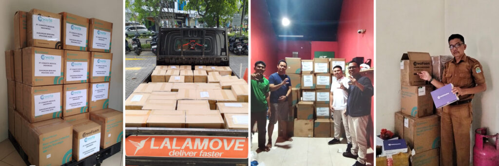 As part of the response, Conkote organized and delivered essential wound care supplies to affected communities in Banda Aceh. These materials were prepared with practical use in mind, supporting basic treatment needs in environments where resources were limited and conditions were constantly changing.